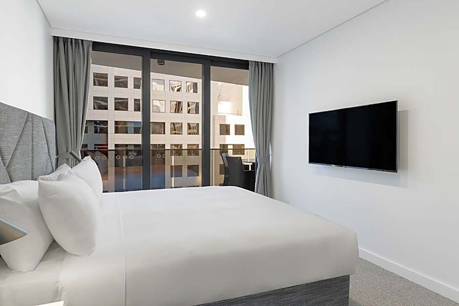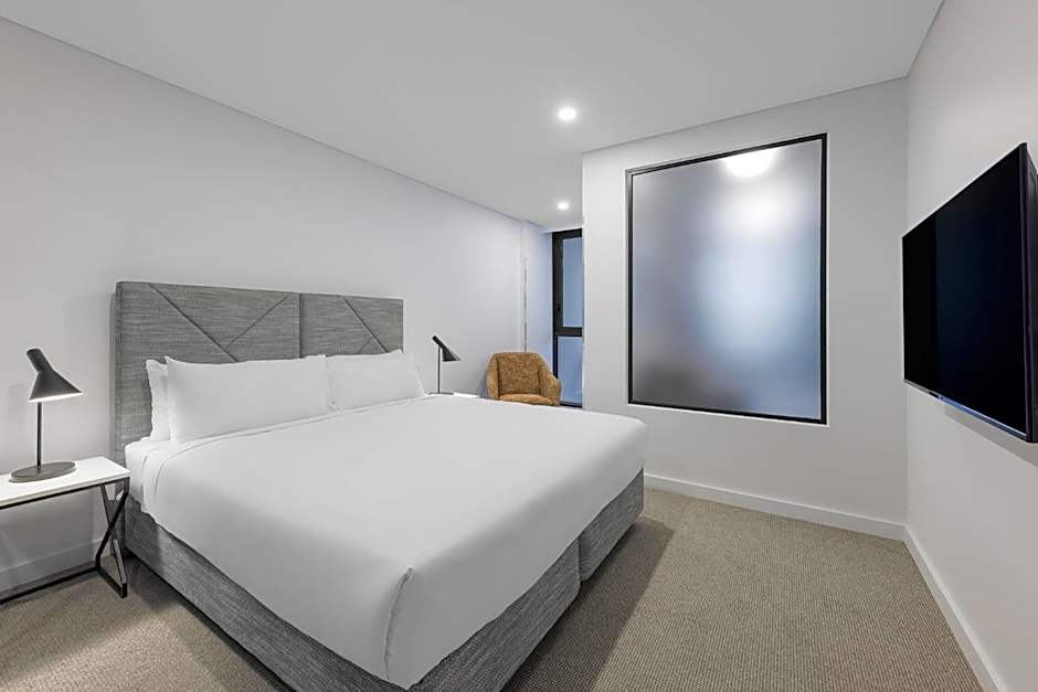 Featuring a king size bed, sofa and dining area and a private balcony, this suite has a fully equipped kitchen and a laundry with a washing machine and dryer. Guest can enjoy Kevin Murphy bathroom amenities. All suites have STAYCAST by Google Chromecast.